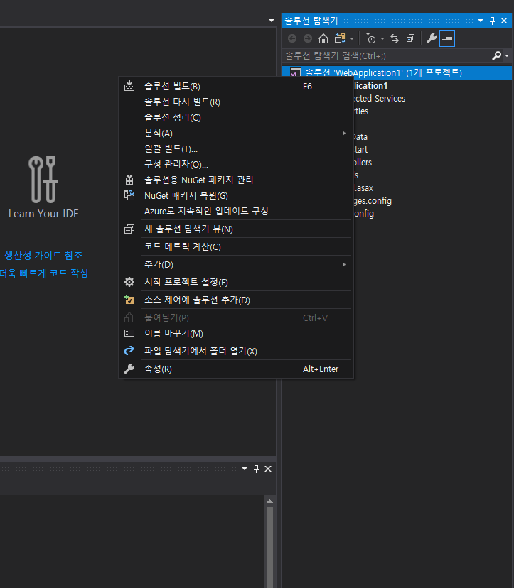프로젝트 + 오른쪽 마우스를 클릭하면 솔루션 빌드가 있다.
